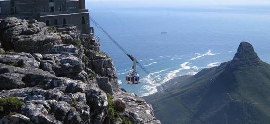 Огромната планина, която гледа към Кейптаун се нарича планината Тейбъл. Можете да вземете кабинковия лифт до върха и след това да се разходите наоколо, за да се насладите на гледката, но ако ви е страх от височини, може би това пътуване не е за вас, или може да го направите с превръзка на очите.